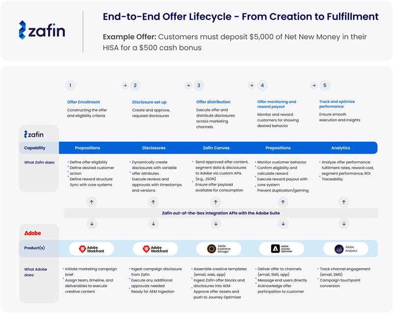 Zafin is an official Adobe Solution Partner. This allows the Disclosures capability to integrate seamlessly with Adobe’s entire suite of MarTech products including Workfront, Asset Manager, Journey Optimizer, and more.