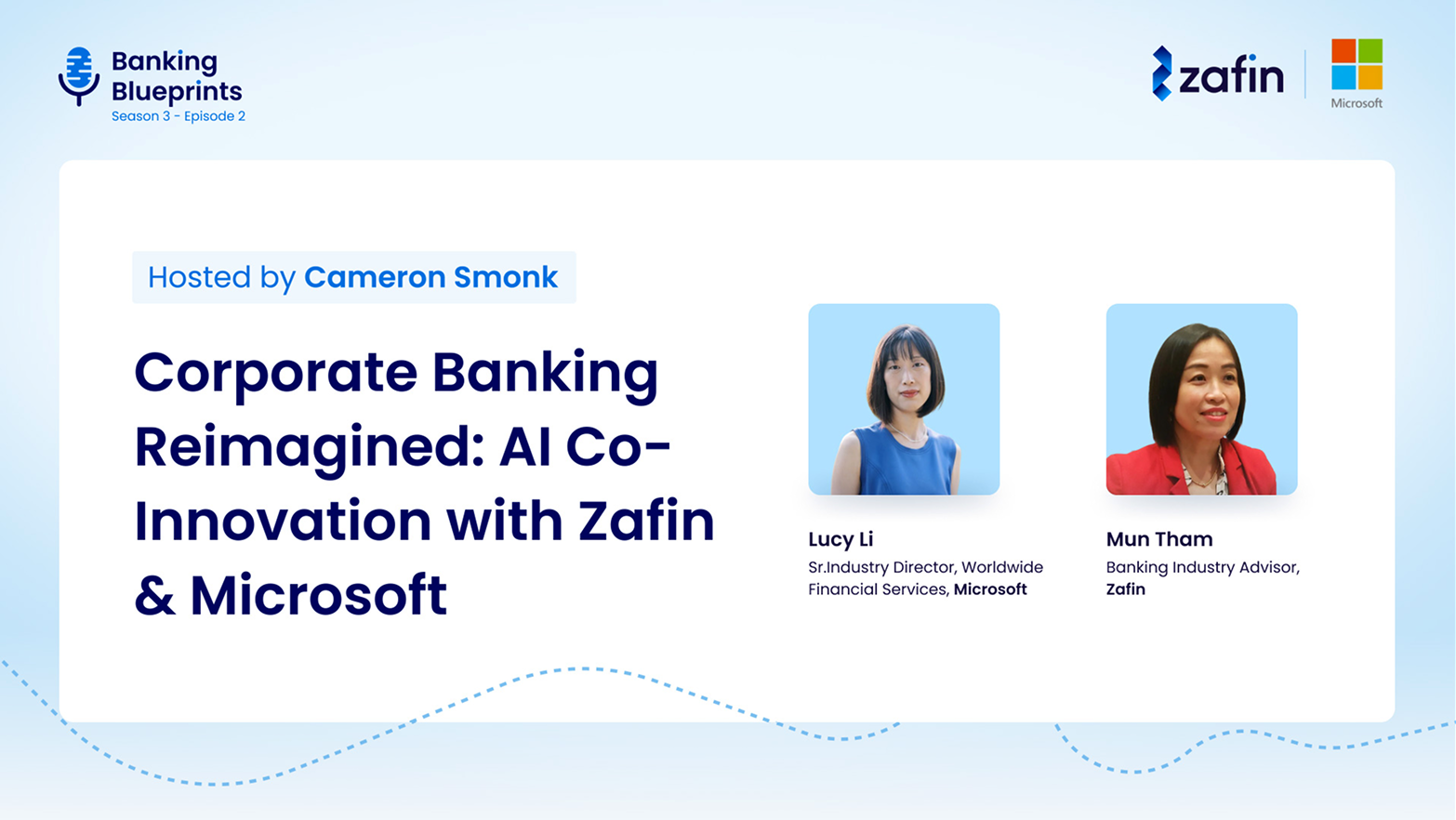 In this episode of Banking Blueprints, Cameron Smonk speaks with Lucy Li (Microsoft) and Mun Tham (Zafin) about how AI, digitization, and rising client…