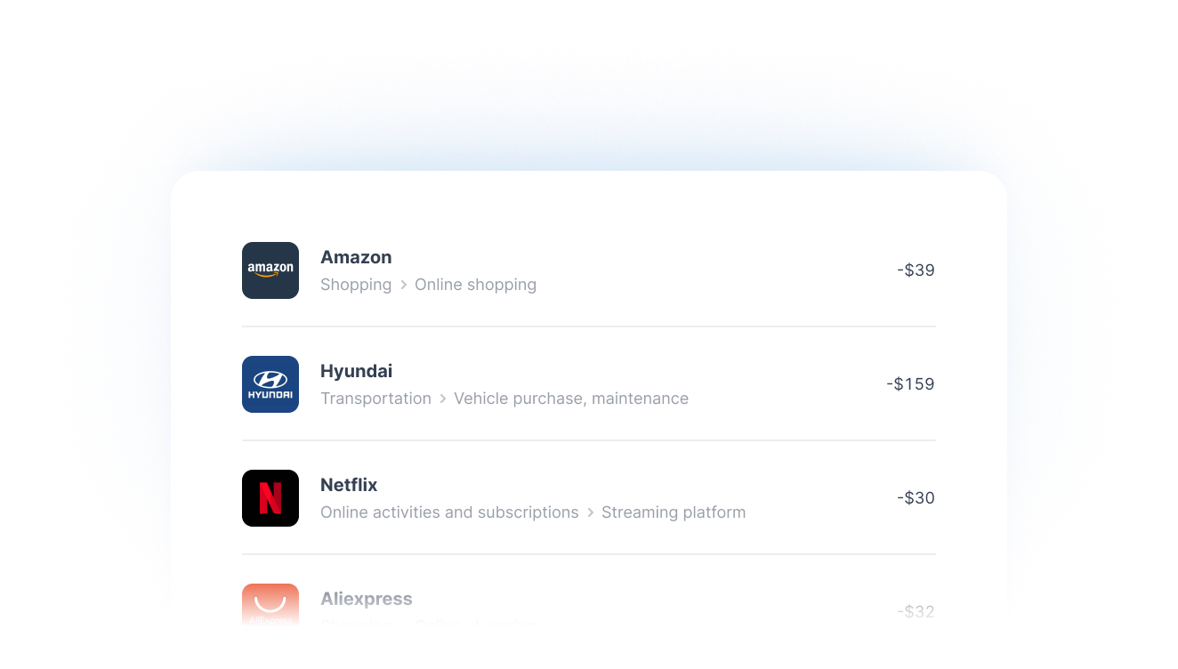 Transform raw, unstructured data into actionable insights by categorizing transactions and enriching merchant details with transaction data enrichment and transaction categorization APIs.
